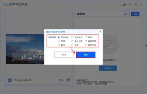 3. 选择字幕语言:根据视频内容,选择合适的字幕语言。